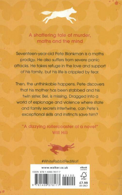 Seventeen-year-old Peter Blankman is a maths prodigy. He also suffers from severe panic attacks. Afraid of everything, he finds solace in the orderly and logical world of mathematics and in the love of his family: his scientist mum and his tough twin sister Bel, as well as Ingrid, his only friend. However, when his mother is found stabbed before an award ceremony and his sister is nowhere to be found, Pete is dragged into a world of espionage and violence where state and family secrets intertwine. Armed only with his extraordinary analytical skills, Peter may just discover that his biggest weakness is his greatest strength.