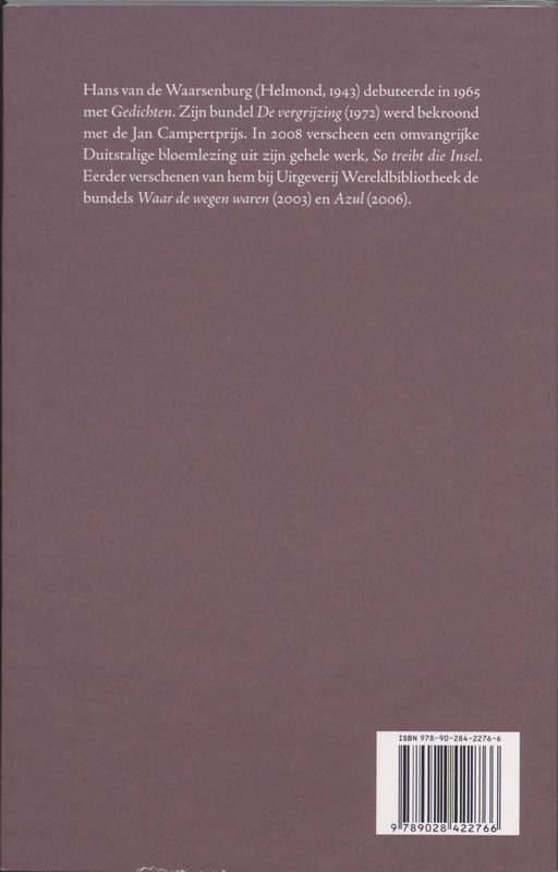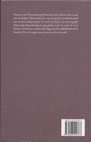 Hans van de Waarsenburg (Helmond, 1943) debuteerde in 1965 met Gedichten. Zijn bundel De vergrijzing werd bekroond met de Jan Campertprijs. In 2008 verscheen een omvangrijke Duitse bloemlezing uit zijn gehele werk, So treibt die Insel.