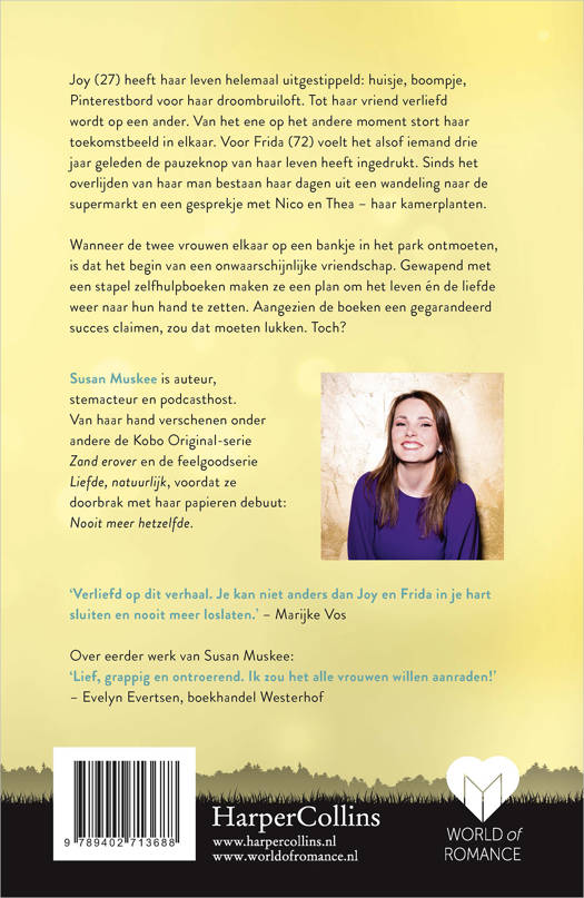 Joy (27) heeft haar leven helemaal uitgestippeld: huisje, boompje, Pinterestbord voor haar droombruiloft. Tot haar vriend verliefd wordt op een ander. Van het ene op het andere moment stort haar toekomstbeeld in elkaar. Voor Frida (72) voelt het alsof iemand drie jaar geleden de pauzeknop van haar leven heeft ingedrukt. Sinds het overlijden van haar man bestaan haar dagen uit een wandeling naar de supermarkt en een gesprekje met Nico en Thea – haar kamerplanten.
