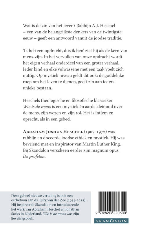 Heschels theologische en filosofische klassieker "Wie is de mens" is een spiritueel én aards kleinood over de mens, zijn wezen en zijn rol. Het is intiem en oprecht, als in een gebed.