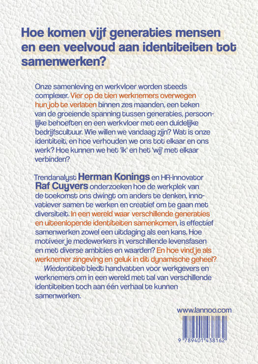 Trendanalyst Herman Konings en HR-innovator Raf Cuyvers onderzoeken hoe de werkplek van de toekomst ons dwingt om anders te denken, innovatiever samen te werken en creatief om te gaan met diversiteit. In een wereld waar verschillende generaties en uiteenlopende identiteiten samenkomen, is effectief samenwerken zowel een uitdaging als een kans. Hoe motiveer je medewerkers in verschillende levens fasen en met diverse ambities en waarden? En hoe vind je als werknemer zingeving en geluk in dit dynamische geheel?