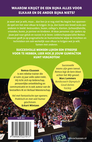 Je weet wat je wilt, maar… dan ben je er nog niet! Nu begint het spannende spel om het voor elkaar te krijgen. En ja, dan komt een breed scala aan anderen in beeld: bestuurders, bazen, collega’s, klanten, (schoon)familie, vrienden, buren, je partner en kinderen. Al deze personen zijn spelers op jouw pad naar geluk en succes in je leven. Leiderschapspecialist Remco Claassen geef je op pragmatische en humoristische wijze de inzichten en technieken om ook werkelijk voor elkaar te krijgen wat je wilt. Samen met anderen.