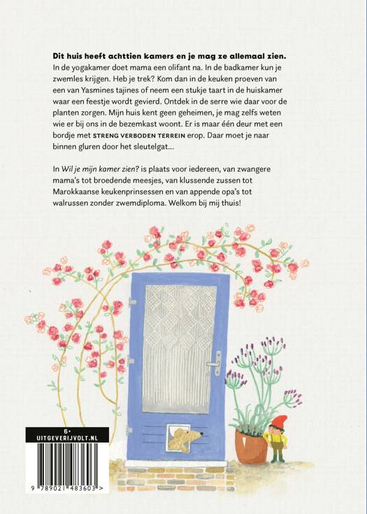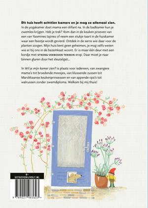 In de yogakamer doet mama een olifant na. In de badkamer kun je zwemles krijgen. Heb je trek? Kom dan in de keuken proeven van één van Yasmines tajines of neem een stukje taart in de huiskamer waar een feestje wordt gevierd. Ontdek in de serre wie daar voor de planten zorgen. Mijn huis kent geen geheimen, je mag zelfs weten wie er bij ons in de bezemkast woont. Er is maar één deur met een bordje met verboden toegang erop. Daar moet je naar binnen gluren door het sleutelgat…