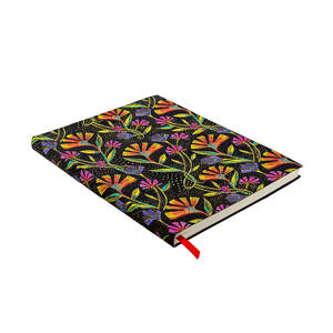 Laurel Burch was a self-taught artist who created brilliantly coloured, vibrant and moving themes with paint and paper, exquisitely embellished with gold and silver. A tribute to the infinite bliss of flowers, this