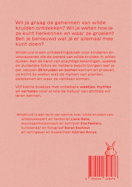 Wildkruid is een bom van kennis over wilde kruiden van wildplukexpert en herborist Lieve Galle, duurzaamheidscoach en schrijver Eva Peeters, kunstenaar en fotograaf Sarah Eechaut en vormgever en boekbinder Katrien Annys.