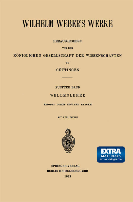 IY heit der beiden Bewegungsarten aufdeckten. Im Zusammenhange des Ganzen durften aber die drei Paragraphen über die Entstehung der Wirbel nicht unterdrückt werden. Der zweite Haupttheil des Werkes behandelt die, r ellen in Bezug auf Schall und Licht; er tritt dem Umfange nach gegen den ersten zurück und besitzt auch nicht mehr eine so unmittelbare Bedeutung wie jener. An Stelle der Andeutung des § 249 über einen Zusammen- hang zwischen dem Klang einer Saite und der Gestalt, die sie bei ihrer Schwingung abwechselnd annimmt, ist die umfassende Theorie der Obertöne und Vokalklänge getreten; neue Methoden der Beobachtung, neue instrumentelle Hülfsmittel von grosseI' Vollkommenheit wurden geschaffen, die Resultate der Forschnng durch ausgezeichnete Werke allgemeiner zugänglich gemacht. Immer aber enthält die WEBER'sche \Vellenlehre auch in ihrem der Akustik gewidmeten Theile eine Reihe von grundlegenden Beobachtungen, auf welche anch jetzt noch jede Darstellung der Akustik zurückgreifen wird. Wir erinnern mit Bezug hierauf an die Messungen der Geschwindigkeit von Seil wellen, an die Untersuchungen über Zungenpfeifen und über die Oerter der Stille in der Umgebung schwingender Stimmgabeln. Der Wellenlehre des Lichts sind nur wenige Paragraphen gewidmet; der eigenen experimentellen Arbeit der Verfasser lag die Optik fern und FRESNEL hatte erst wenige Jahre früher die Reihe seiner Arbeiten eröffnet; im selben Jahre mit der Wellenlehre erschien zum ersten Male die Uebersetzung einer FREsNEL'schen Abhandlung in den POGGEN- DORFl