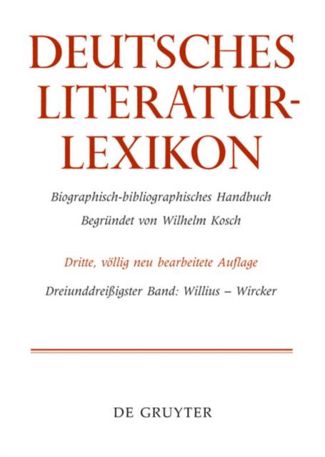 das Deutsche Literatur-Lexikon ist eines der bekanntesten, umfangreichsten und zuverlässigsten Nachschlagewerke zur deutschen Literatur. Zeitlich reicht es vom frühen Mittelalter bis zur jüngsten Gegenwart. Band 33 enthält u.a. Artikel zu Johann Joachim Winckelmann und Josef Winkler. Der Begriff der Literatur wird sehr weit gefasst, deshalb sind neben den Autoren der klassischen Gattungen auch Vertreter anderer Fachgebiete verzeichnet.