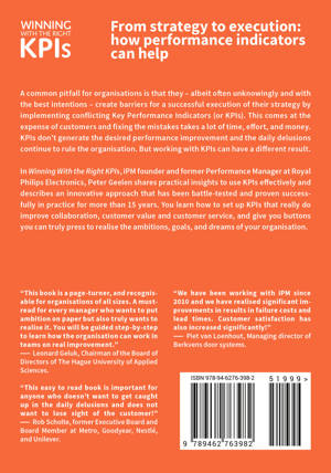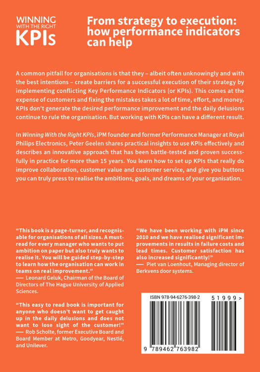 In Winning With the Right KPIs, iPM founder and former Performance Manager at Philip, Peter Geelen shares practical insights to use KPIs effectively and describes an innovative approach that has been battle-tested and proven successfully in practice. You learn how to set up KPIs that really do improve collaboration, customer value and customer service, and give you buttons you can truly press to realise the ambitions, goals, and dreams of your organisation.
