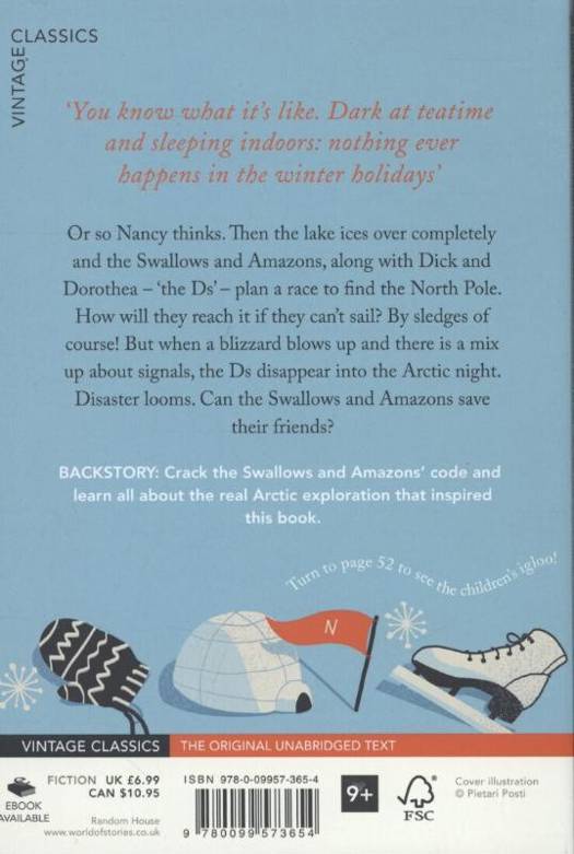 Then the lake ices over completely and the Swallows and Amazons, along with Dick and Dorothea - ‘the D’s’ - plan a race to find the North Pole. Can the Swallows and Amazons save their friends? BACKSTORY: Crack the Swallows and Amazons' code and learn all about the real Arctic exploration that inspired this book.
