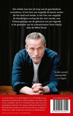 ‘Eén enkele man kan de loop van de geschiedenis veranderen. In het hart van mogelijk de barste winter die het land ooit kende, in het hart van mogelijk de bloederigste oorlog die het ooit voerde, was Finland getuige van de geboorte van een legende in de gedaante van de scherpschutter Simo Häyhä, alias de Witte Dood.’