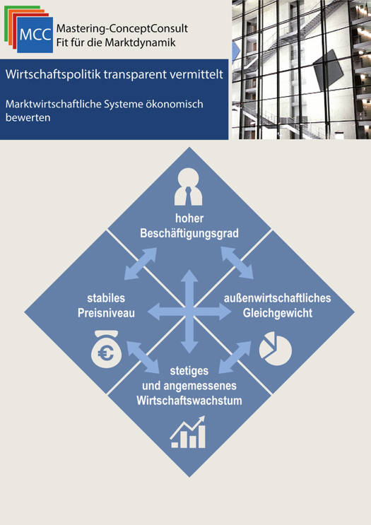 Mit dem MCC Wirtschaft Leitfaden "Wirtschaftspolitik transparent vermittelt" erhalten Sie die nötigen Informationen zu den Grundlagen, dem Aufbau ökonomischer Systeme und deren Zielsetzungen. Weiterhin vermittelt Ihnen der Autor in einer leicht verständlichen Art und Weise das nötige Instrumentarium für eine zielgerichtete Steuerung mit den ökonomischen Parameter für eine gesunde Wirtschaftspolitik.Vom Wirtschaftsprozess, dem Gleichgewicht bis hin zum Wirtschaftswachstum und der Ausrichtungen innerhalb der Wirtschaftspolitik erhalten Sie alle nötigen Faktoren für eine fundierte, ökonomische Beurteilung der marktwirtschaftlichen Systeme. In Anlehnung an den klassischen Theorien der Volkswirtschaft und seinen Vertretern, erhalten Sie mit diesem MCC Wirtschaft eBook eine transparente Wissensvermittlung aller entscheidenden Instrumente, Theorien und Entwicklungen.Erfahren Sie somit die Zusammenhänge und bekannten Theorien wirtschaftspolitischer Maßnahmen in der Vergangenheit und nutzen Sie dieses Wissen für eine zukünftig, erfolgreiche marktwirtschaftliche Entwicklung. Fallbeispiele und Übungsaufgaben festigen Ihr gewonnenes Wissen und unterstützen Sie bei dem Erkenntnisgewinn. Nutzen Sie auch die Inhalte der weiteren MCC Wirtschaft eBooks und Bücher um wirtschaftliche Zusammenhänge zu verstehen und die entsprechend geeigneten Maßnahmen für Ihre Zielerreichung zukünftig erfolgreich einzusetzen.