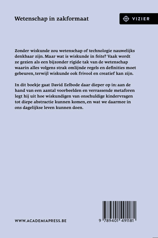 In dit boekje gaat David Eelbode daar dieper op in: aan de hand van een aantal voorbeelden en verrassende metaforen legt hij uit hoe wiskundigen van onschuldige kindervragen tot diepe abstractie kunnen komen, en wat we daarmee in ons dagelijkse leven kunnen doen.