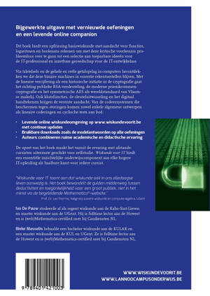Volledig bijgewerkt met nieuwe oefeningen en een update van het online-gedeelte Dit boek biedt een opfrissing basiswiskunde met aandacht voor functies, logaritmen en booleaans rekenen om met deze kritische voorkennis probleemloos over te gaan tot een selectie aan toepasbare ideeën voor de IT-professional en inzetbaar gereedschap voor de IT-ontwikkelaar. Via talstelsels en de gehele en reële getalopslag in computers herontdekken we dat deze binaire machines in essentie rekentoestellen blijven. Met de lineaire vercijfering als een historische initiatie in de cryptografie gaat het richting publieke RSA-versleuteling, de moderne priemkrommencryptografie en het symmetrische AES als wereldstandaard van Vlaamse makelij. Ook klutsfuncties, de sleuteluitwisseling en het digitaal handtekenen krijgen de vereiste aandacht. Van de codeersystemen die beschermen tegen storingen komen zowel enkele algemene ontwerpen als lineaire coderingen en cyclische tests aan bod. - Levende online wiskundeomgeving op