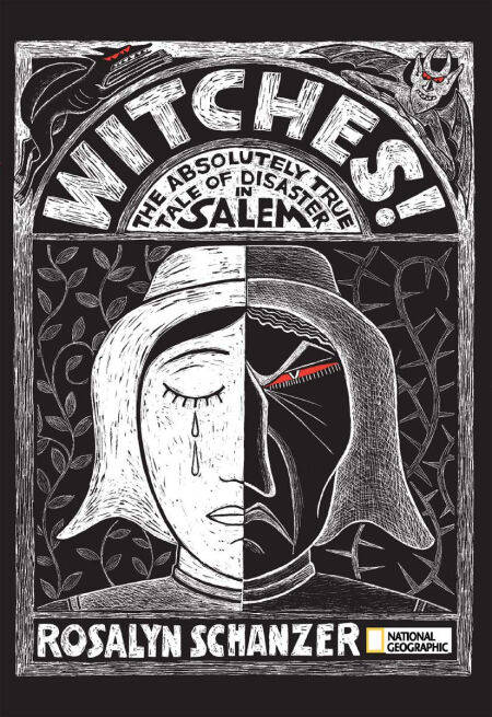 The riveting, true story of the victims, accused witches, crooked officials, and mass hysteria that turned a mysterious illness affecting two children into a witch hunt that took over a dozen people’s lives and ruined hundreds more unfolds in chilling, novelistic detail—complete with stylized black-white-and-red scratchboard illustrations of young girls having wild fits in the courtroom, witches flying overhead, and the Devil and his servants terrorizing the Puritans— in this young adult book by award-winning author and illustrator Rosalyn Schanzer.
