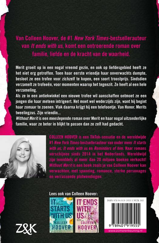'Without Merit' is een verhaal over leugens, liefde en waarheid van Colleen Hoover, de internationale bestsellerauteur van 'It starts with us' en 'It ends with us'.