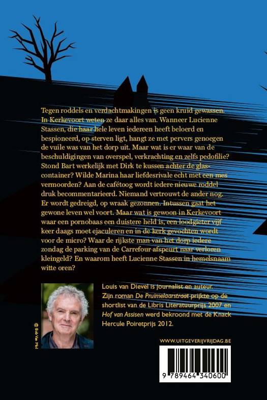 Tegen roddels en verdachtmakingen is geen kruid gewassen. In Kerkevoort weten ze daar alles van. Wanneer Lucienne Stassen, die haar hele leven iedereen heeft beloerd en bespioneerd, op sterven ligt, hangt ze met pervers genoegen de vuile was van het dorp uit. Maar wat is er waar van de beschuldigingen van overspel, verkrachting en zelfs pedofilie? Stond Bart werkelijk met Dirk te kussen achter de glascontainer? Wilde Marina haar liefdesrivale echt met een mes vermoorden? Aan de cafétoog wordt iedere nieuwe roddel druk becommentarieerd. Niemand vertrouwt de ander nog. Er wordt gedreigd, op wraak gezonnen. Intussen gaat het gewone leven wel voort. Maar wat is gewoon in Kerkevoort waar een pornobaas een duistere held is, een loodgieter vijf keer daags moet ejaculeren en in de kerk gevochten wordt voor de micro? Waar de rijkste man van het dorp iedere zondag de parking van de Carrefour afspeurt naar verloren kleingeld? En waarom heeft Lucienne Stassen in hemelsnaam witte oren?