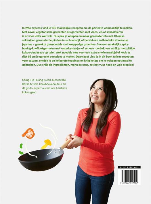 Zin in een snelle en gezonde Aziatische maaltijd? Haal je wokpan uit de keukenkast, want met de 100 wokrecepten van Ching-He Huang heb je genoeg inspiratie om iedere dag te wokken. Van vegetarisch tot kip en vlees en van vis tot schaaldieren: in 'Wok express' staat er voor ieder wat wils. Serveer chow mein van paddenstoelen met paksoi, maak gebakken rijst met garnalen en Chinese kool, of wat dacht je van kip teriyaki met groene pepers? Wok de noedels mee voor een extra snelle maaltijd of kook er rijst bij - de keuze is aan jou. Ontdek ook recepten voor sauzen en toppings, leer tips over hoe je je wokpan optimaal gebruikt en welke volgorde je kunt aanhouden als je ingrediënten toevoegt om de ultieme wokmaaltijd te krijgen. Met 'Wok express' zet je binnen een mum van tijd een kom lekkers op tafel, vol smakelijke en knapperige groenten en heerlijke noedels (of rijst!).