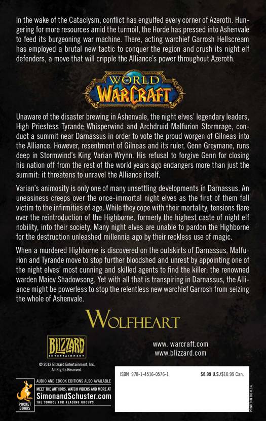Unaware of the disaster brewing in Ashenvale, the night elves' legendary leaders, High Priestess Tyrande Whisperwind and Archdruid Malfurion Stormrage, conduct a summit near Darnassus in order to vote the proud worgen of Gilneas into the Alliance. However, resentment of Gilneas and its ruler, Genn Greymane, runs deep in Stormwind's King Varian Wrynn. His refusal to forgive Genn for closing his nation off from the rest of the world years ago endangers more than just the summit: it threatens to unravel the Alliance itself.