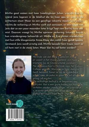 Mirthe gaat samen met haar tweelingbroer Julian, vriendin Eva en vriend Jens logeren in de blokhut die bij haar opa en oma in de achtertuin staat. Maar na een gezellige vakantie maakt Jens onverwachts de verkering uit. Mirthe voelt zich eenzaam, en een appje van Jens dat ze een paar maanden later krijgt, laat zien dat hij haar ook mist. Daarom vraagt hij Mirthe opnieuw verkering. Intussen breidt hun vriendengroep behoorlijk uit. Mirthe en Eva sluiten vriendschap met hun stille klasgenootje Anna. Maar dan wordt haar geluk opeens verstoord: Jens wordt ernstig ziek. Mirthe bezoekt hem trouw, want ze wil hem niet in de steek laten. Maar kan hij wel beter worden?