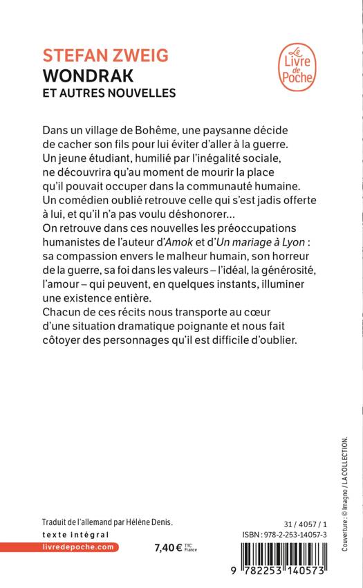 Dans ces nouvelles longtemps inédites en français, on retrouve les grandes préoccupations humanistes de l'auteur d'Amok et d'Un mariage à Lyon : sa compassion envers le malheur humain, son horreur de la guerre, sa foi dans les valeurs - l'idéal, la générosité, l'amour - qui peuvent, en quelques instants, illuminer une existence entière. Chacune crée en quelques pages une situation dramatique qui nous empoigne, des personnages qu'il est difficile d'oublier.