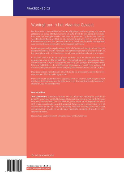 In dit boek vindt u in de eerste plaats modellen voor het sluiten van huurovereenkomsten voor hoofdverblijfplaatsen, studentenhuurovereenkomsten en huurovereenkomsten volgens het gemene huurrecht (bv. garages, kantoorgebouwen, loodsen, clublokalen,…). De regelgevende basis daarvoor wordt gevormd door het Vlaams Woninghuurdecreet en het Burgerlijk Wetboek (artikelen 1713 tot 1762bis).