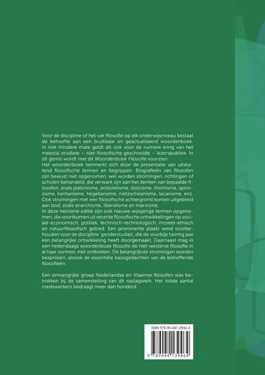 In deze herziene editie zijn ook nieuwe wijsgerige termen opgenomen, die voortkomen uit recente filosofische ontwikkelingen op sociaal-economisch, politiek, technisch-technologisch, moreel-ethisch en natuurfilosofisch gebied. Een prominente plaats werd voorbehouden voor de discipline ‘genderstudies’, die de voorbije twintig jaar een belangrijke ontwikkeling heeft doorgemaakt. Daarnaast mag in een hedendaags woordenboek filosofie de niet-westerse filosofie in al haar vormen, niet ontbreken. De belangrijkste stromingen worden besproken, alsook de essentiële basisgedachten van de betreffende filosofieën.