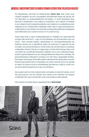 Hester Bais dook in deze onderpandfraude en ontdekte een internationaal scenario dat vanaf 2007 - nog voor het uitbreken van de financiële crisis van 2008! - door centrale banken, zakenbanken en vermogensbeheerders als Goldman Sachs, ING en BlackRock achter de schermen is uitgerold. Na het omvallen van Lehman Brothers in 2008 is door de G20 het nieuwe monetaire, multipolaire 'Bretton Woods 2.0' uitgeroepen. Zonder dat de burger daar weet van heeft zijn wereldwijd duizenden miljarden euro's aan onderpand hergebruikt en gecentraliseerd om de onderpandtekorten blijvend te verhullen. Dit gecentraliseerde onderpand is de basis voor het nieuw opgetuigde Distributed Ledger Technology-financiële stelsel waarbinnen komende jaren verschillende (crypto)valuta zijn te verhandelen van onder meer de VS, EU, UK, Canada en Japan. De nieuwe enorme schuldenberg die daarvoor nodig is, wordt voor een groot deel doorgeschoven naar onze kinderen.