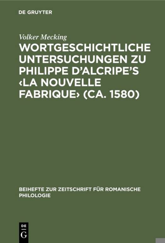 Wortgeschichtliche Untersuchungen Zu Philippe d'Alcripe's (Ca. 1580)
