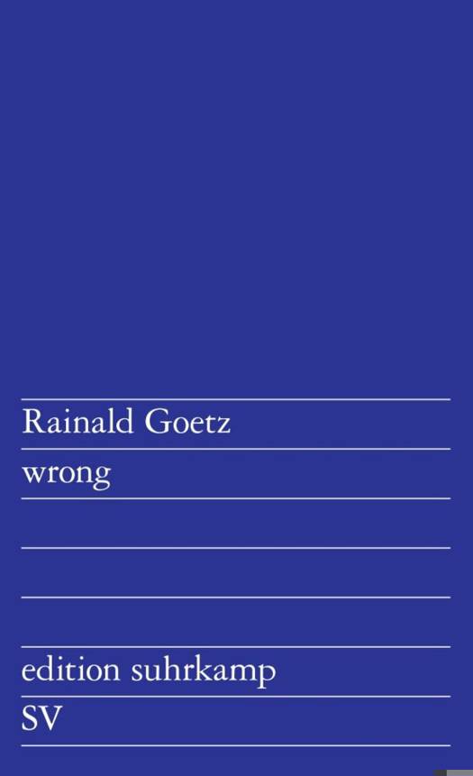 WRONG: Auftritt, Vortrag, Lehre, Interview, Kritik: alles falsch, alles immer wieder: wrong. Und doch ist es wichtig, daß man sich als Autor auch direkt, mit solchen Textaktionen, am öffentlichen Gespräch beteiligt, lebendig, wirr, flirrend, das Ich ungeschützt präsentiert, nicht nur in die finale Totengestalt des Werks hineinkonzentriert.