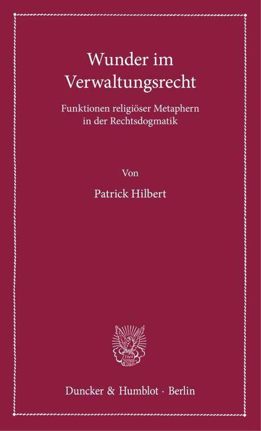 English summary: Miracles in Administrative Law. Functions of Religious Metaphors in Legal Dogmatics Miracles are quite common in administrative law as religious metaphors are used in legal justifications. Patrick Hilbert shows why metaphors are an acceptable means of legal argumentation and which functions metaphors can fulfill in legal docmatics. German description: Wunder gibt es im Verwaltungsrecht immer wieder. Sie begegnen uns als religiose Metaphern in dogmatischen Argumentationen. Wenn sich etwa der gebundene Anspruch auf Nutzung einer offentlichen Einrichtung in einen Anspruch auf ermessensfehlerfreie Auswahlentscheidung wandelt, wird hierfur zwar keine klassische dogmatische Begrundung gegeben, mit der Bezeichnung als Wandlung aber eine Formulierung gebraucht, die nicht nur entfernt an die Transsubstantiation erinnert.Anhand von drei Beispielen spurt Patrick Hilbert den religiosen Metaphern im Verwaltungsrecht nach, untersucht, ob ihre Verwendung methodisch zulassig ist und welche Funktionen (religiose) Metaphern in der juristischen Dogmatik erfullen konnen.