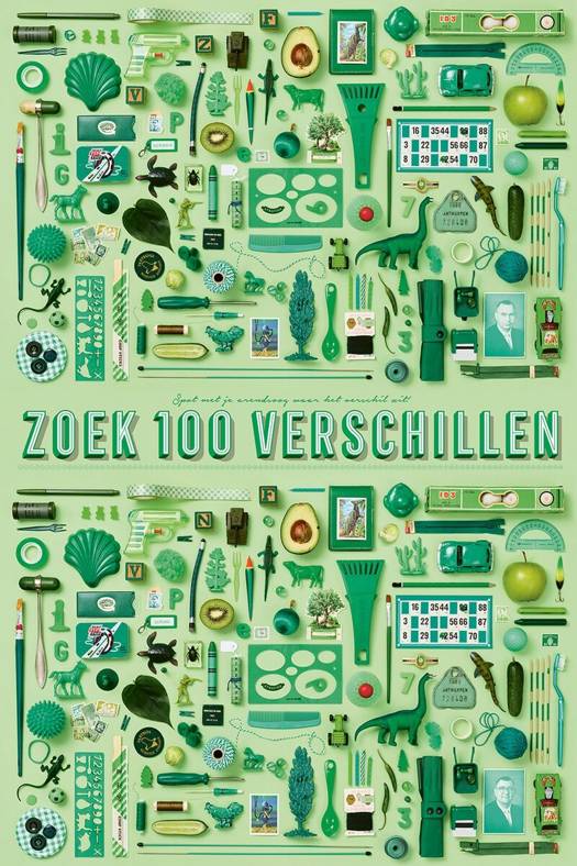 Op deze kwalitatieve poster van 65 x 100 cm vind je 2 dezelfde afbeeldingen, ze lijken een exacte kopie van elkaar te zijn maar niets is minder waar. Er zijn wel 100 verschillen... gebruik je arendsoog en spot ze allemaal! Have Fun!