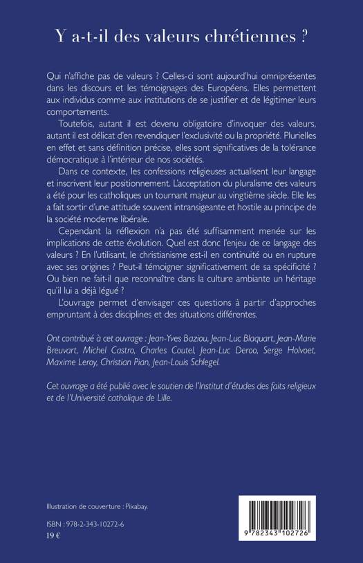 Les valeurs sont aujourd'hui omniprésentes dans les discours et les témoignages des Européens. Elles permettent aux individus comme aux institutions de se justifier et de légitimer leurs comportements. Toutefois, autant il est devenu obligatoire d'invoquer des valeurs, autant il est délicat d'en revendiquer l'exclusivité ou la propriété. L'acceptation du pluralisme des valeurs a été pour les catholiques un tournant majeur au vingtième siècle. Mais, en utilisant le langage des valeurs, le christianisme se positionne-t-il en continuité ou en rupture avec ses origines ?