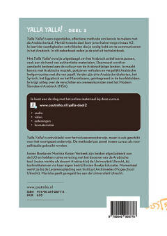 Met Yalla! word je uitgedaagd om Arabisch actief toe te passen, vaak aan de hand van authentieke materialen. Daarnaast wordt er aandacht besteed aan de cultuur van de Arabischtalige landen. Je maakt kennis met Arabische muziek, poëzie en verhalen en vergelijkt Arabische leefgewoontes met die van jezelf. Verder zijn drie Arabische dialecten, het Syrisch, het Egyptisch en het Marokkaans, geïntegreerd in de hoofdstukken. Je krijgt uitleg over de verschillen en overeenkomsten met het Modern Standaard Arabisch (MSA).