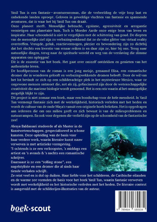 Yaxil Tun is een fantasie−avonturenroman, die de verbeelding de vrije loop laat en onbekende landen oproept. Geloven in geweldige vluchten van fantasie en spannende avonturen, dat is waar het bij Yaxil Tun om draait.Onze planeet sterft. Menselijke hebzucht, egoïsme, agressiviteit en arrogantievernietigen ons planetaire huis. Toch is Moeder Aarde onze enige bron van leven en inspiratie. Haar schoonheid is niet te vergelijken met de schittering van goud. De diepten van de menselijke ziel zijn zo verbazingwekkend dat ze de valse glitter van virtual reality overtreffen. Vreugde, geluk, reactievermogen, plezier en bewondering zijn zo dichtbij dat het slechts een kwestie van ernaar reiken is en daar zijn ze, hier bij ons. Terug naar natuurlijke dingen, terug naar de spirituele wereld en weg van de verslaving die slimme apparaten ons opleggen!Dit is de essentie van het boek. Het gaat over onszelf ontdekken en genieten van het authentieke leven.De hoofdpersoon van de roman is een jong meisje, genaamd Elisa, een romantische dromer die in wonderen gelooft en verbazingwekkende dromen beleeft. Door de wil van het lot bevindt ze zich op een schilderachtige plek in het mysterieuze Mexico, waar ze ongewone mensen ontmoet die, net als zij, gefascineerd zijn door de wetenschappelijke creativiteit die mariene biologie wordt genoemd. Het is een reis waarin al het onmogelijke mogelijk blijkt te zijn.Dit project is niet zomaar een boek, maar een boodschap voor de hele mensheid. In Yaxil Tun vermengt fantasie zich met de werkelijkheid, historisch verleden met het heden en wordt de cultuur van de oude Maya's vanuit een originele hoek bekeken. Het is opgedragen aan iedereen die om ons milieu geeft en zich bewust is van de milieuproblemen en natuurrampen. En ook voor degenen die verliefd zijn op de schoonheid van de fantastische zee!
