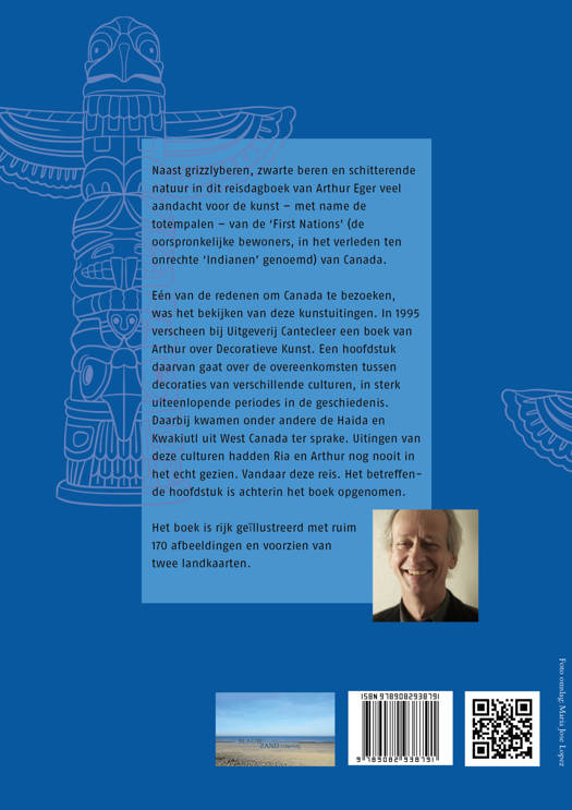 Naast grizzlyberen, zwarte beren en schitterende natuur in dit reisdagboek van Arthur Eger veel aandacht voor de kunst – met name de totempalen – van de ‘First Nations’ (de oorspronkelijke bewoners, in het verleden ten onrechte ‘Indianen’ genoemd) van Canada. Eén van de redenen om Canada te bezoeken, was het bekijken van deze kunstuitingen. In 1995 verscheen bij Uitgeverij Cantecleer een boek van Arthur over Decoratieve Kunst. Een hoofdstuk daarvan gaat over de overeenkomsten tussen decoraties van verschillende culturen, in sterk uiteenlopende periodes in de geschiedenis. Daarbij kwamen onder andere de Haida en Kwakiutl uit West Canada ter sprake. Uitingen van deze culturen hadden Ria en Arthur nog nooit in het echt gezien. Vandaar deze reis. Het betreffen- de hoofdstuk is achterin het boek opgenomen. Het boek is rijk geïllustreerd met ruim 170 afbeeldingen en voorzien van twee landkaarten.