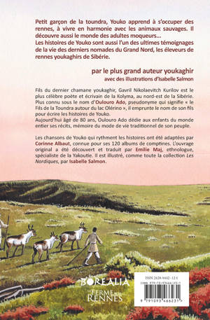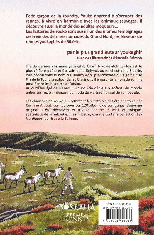 Petit garçon de la toundra, Youko apprend à s’occuper des rennes, à vivre en harmonie avec les animaux sauvages. Il découvre aussi le monde des adultes moqueurs... Les histoires de Youko sont aussi l’un des ultimes témoignages de la vie des derniers nomades du Grand Nord, les éleveurs de rennes youkaghirs de Sibérie. A LA DÉCOUVERTE DES YOUKAGHIRS DE SIBÉRIE Les histoires de Youko se déroulent au nord-est de la Russie, dans une région tout au nord de la République de Yakoutie : la Kolyma. Elles illustrent la vie des Youkaghirs, dont beaucoup étaient encore nomades durant la seconde moitié du du XXe siècle. Si les Youkaghirs étaient environ 400 au début du XXe siècle, on compte une population de 1500 personnes depuis le recensement de la Fédération russe de 2010. Même si le chiffre official de la population augmente sans cesse, le nombre de locuteurs de la langue, lui, diminue au profit des langues russe et yakoute : moins de 50 personnes aujourd’hui sont capables de parler le youkaghir. La majorité des Youkaghirs vivent sur le territoire de la Yakoutie. Quelques centaines d’entre eux vivent dans les régions voisines : en Tchoukotka et dans la région de Magadan. Dès le début des années 1990, au lendemain de la chute de l’Union soviétique, les Youkaghirs de Yakoutie ont réclamé la création d’une unité administrative propre. C’est en 1998 qu’est né le Souktoul, une municipalité formée autour du village d’Andriouchkino, qui possède son propre statut juridictionnel au sein de la République de Yakoutie. Le Souktoul a pour objectif de soutenir les projets autour de la culture youkaghire et de lutter contre les fléaux sociaux qui menacent les petits peuples de Sibérie.