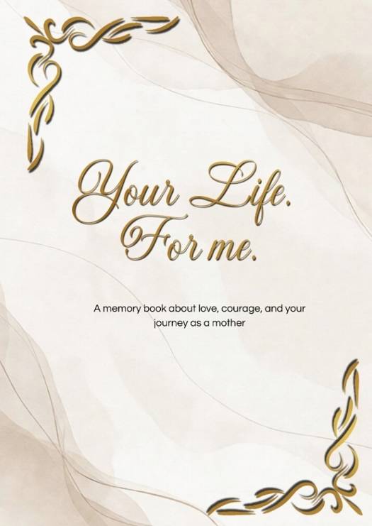 Your Life. For Me. is a memory book for mothers who raised their children on their own or carried most of that journey by themselves.It gathers not only emotions, but also facts, turning points, and defining moments of a life: childhood, youth, dreams, love, loss, strength, everyday life, and what remained.The book is written from a child's perspective - through questions that seek to understand who this woman was before and while she became a mother.It is not about partnerships or idealized images of family life, but about the path of a mother who carried responsibility, made decisions, and kept going - often quietly, often unseen.The result is not a questionnaire, but a personal document: a life story told in words.