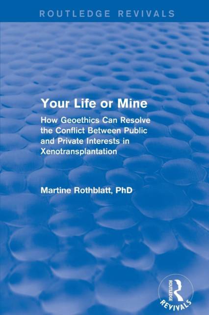 This title was first published in 2003. Xenotransplantation - the transplantation of animal organs into humans - poses a fascinating moral dilemma. Should this ability to extend the lives of millions of older people be permitted given that it might trigger a new pandemic similar to AIDS? This study examines the moral dilemma from a combination of humanistic, legalistic, bioethical, economical and technological perspectives. The first part of the book demonstrates that xenografts are the only realistic near-term technological answer to the organ shortage problem. The balance of the book is devoted to assessing whether doctrines such as the 'right to health care' trump the moral and ethical conundrums posed by xenotransplantation. The book concludes with a 'geoethical' solution that proposes authorization of xenotransplantation subject to the prior implementation of a new international organization for epidemiology and basic health care. It also suggests that the costs of operating such an organization could be covered by a global tax on xenografts.