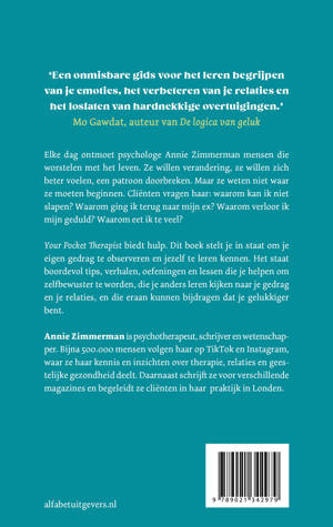 Elke dag ontmoet psychologe Annie Zimmerman mensen die worstelen met het leven. Ze willen verandering, ze willen zich beter voelen, een patroon door breken. Maar ze weten niet waar ze moeten beginnen. Cliënten vragen haar: waarom kan ik niet slapen? Waarom ging ik terug naar mijn ex? Waarom verloor ik mijn geduld? Waarom eet ik te veel? ‘Your Pocket Therapist’ biedt hulp. Het stelt je in staat om je eigen gedrag te observeren en jezelf te leren kennen. Het staat boordevol tips, verhalen, oefeningen en lessen die je helpen om zelf bewuster te worden, die je anders leren kijken naar je gedrag en je relaties en die eraan kunnen bijdragen dat je gelukkiger bent.