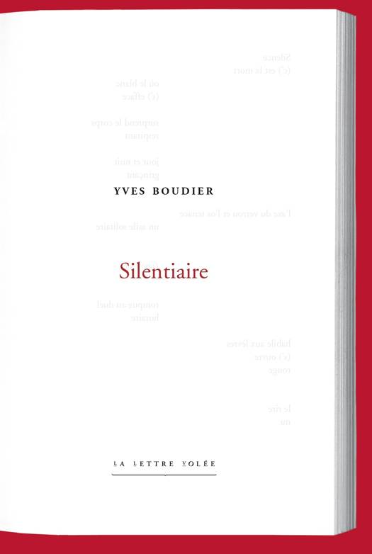 Le silence est la condition même de l'écoute. Il se presse à l'orée de la parole. Ce livre est une véritable révélation. Il soulève les interrogations fondamentales touchant nos manières d'attendre et d'entendre. Il tente une illustration, voire un dépassement, de la question du silence telle que Blanchot en particulier la pensa : « Être fidèle à la poésie, c'est concilier la volonté de parler et le silence […] Ce silence a sa source dans l'effacement auquel celui qui écrit est invité ». Toutefois, s'il n'y a aucune posture solipsiste dans Silentiaire, aucun poème ne s'autorisant la mise en scène d'un Je, pour autant le poète tient parole et, poème après poème, affirme la souveraineté de la poésie contre le néant. À l'image d'un reliquaire, inventaire, bestiaire ou légendaire… Silentiaire est une épellation thématique conduisant à la célébration finale du poème comme espace et matière, poème qui renvoie, da capo, à la mort initiale, défiée au fil des pages par chacune des déclinaisons qui constitue l'ensemble. Le parcours se boucle et s'offre ainsi à des « reprises », car suite poétique plus que simple liste, Silentiaire suppose une approche circulaire des poèmes, au-delà de la disposition linéaire propre à la forme livre. Sa prosodie prolonge celle des livres qui le précèdent et situe cet ensemble dans la volonté de suivre avec cohérence une démarche poétique authentique.Yves Boudier, est né en 1951 en Basse-Normandie et vit à Paris. Professeur de Lettres jusqu'en 2012 à l'Université de Cergy-Pontoise, il est le président de l'association C/I/R/C/E Marché de la Poésie depuis 2015. Administrateur de la Biennale Internationale des Poètes (2006-2017), il a été Président de la Maison des écrivains et de la littérature (M.E.L). Membre des comités de rédaction des revues Action Poétique (1978-2012) et Passage d'Encres (1996-2014), il a publié des notes critiques et des poèmes dans de nombreuses revues dont Fixxion, CCP, Po&sie, Le Préau des collines, Siècle 21, Rehauts, Midi, L'Intranquille, Petite, Il Particolare, Europe, Secousse, Zone sensible, la Revue des revues… et sur les sites Poezibao et Sitaudis. Il a aussi contribué à l'organisation des États généraux permanents de la poésie et à différents colloques sur l'écriture et la poétique (Collège International de Philosophie, M.E.L.).