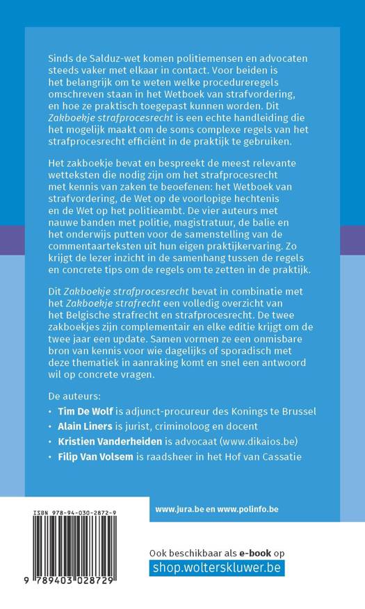 In combinatie met het Zakboekje Strafrecht krijgt u een volledig overzicht van het Belgische strafrecht en strafprocesrecht. De zakboekjes zijn complementair en krijgen om de twee jaar een update. Samen vormen ze een onmisbare bron van kennis voor wie dagelijks of sporadisch met deze thematiek in aanraking komt en snel een antwoord wil op concrete vragen.