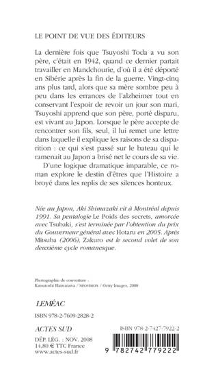 Voilà vingt-cinq ans que Bânzo Toda est porté disparu - depuis sa déportation dans un camp de travaux forcés en Sibérie, à la fin de la guerre. Sa femme, atteinte de la maladie d'Alzheimer, n'a jamais perdu l'espoir de le revoir. Quand leur fils Tsuyoshi découvre que son père vit depuis des années dans une ville toute proche, qu'il a changé de nom et s'est remarié, il veut comprendre.