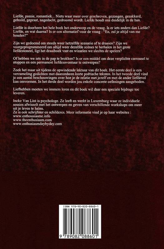 Liefde. Niets waar meer over geschreven, gehuild, gepraat, gevoeld, geleden en gesakkerd wordt. Liefde houdt ons duidelijk in de ban. Waarom willen we absoluut een relatie? Waarom zijn relaties zo moeilijk? Waarom doen we elkaar zoveel pijn in een relatie? Waar komt die pijn echt vandaan? Waarom is passie zo verscheurend en hoe geraken we zonder kleerscheuren uit een stuk gelopen relatie? Hoe kunnen we nog vertrouwen in de liefde? Waarom zijn we zo afhankelijk van onze partner en hoe kunnen we hem/haar liefhebben zonder onszelf te verliezen? Wat wil echte liefde zeggen? Hoe kunnen we liefhebben zonder het risico te lopen om (weeral) gekwetst te worden? Hoe kunnen we onszelf blijven in een liefdevolle relatie? Kunnen we wel een relatie aangaan met onszelf als we in relatie zijn met een ander? Kunnen we wel een relatie aangaan met een ander als we tegelijkertijd onszelf trouw willen blijven? Hoe gaan we een liefdevolle relatie aan met onszelf? Hoe kunnen we houden van onszelf, zodat we steviger in de relatie staan met de ander? Kunnen we echt leren houden van elkaar, en van onszelf? Hoe doen we dat? Op deze en andere vragen over liefde vind je hier een boek vol beschouwingen en antwoorden. Dit boek stelt een andere vorm van liefde voor. Diepe waarachtige liefde. Eerst en vooral met jezelf. Om beter te kunnen houden van de ander. En zo te groeien naar echte liefde.
