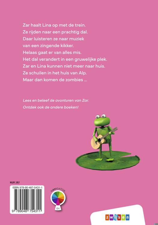Hoofdrolspelers Zar en Lina zitten in een computerspel en beleven allerlei spannende avonturen. Welk avontuur beleven Zar en Lina dit keer in hun spel? Het boek begint rustig. Zar en Lina zitten in de trein en luisteren muziek. Ze kijken naar al het moois dat voorbijkomt door het raampje in hun coupe. Maar dan gaat het gruwelijk mis. Het mooie dal verandert in een naargeestige plek. Gelukkig kunnen ze schuilen bij Alp. Zar en Lina halen opgelucht adem, maar hebben te vroeg gejuicht. Daar zijn de zombies …