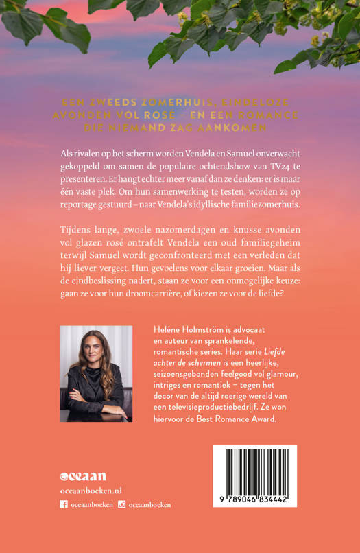 'De perfecte nazomerroman' Libelle Heerlijke feelgood met een prachtige liefdesgeschiedenis Tv-rivalen Vendela en Samuel krijgen samen de kans om de populaire ochtendshow van TV24 te presenteren. Maar wanneer blijkt dat er uiteindelijk slechts één vaste plek te vergeven is, laait de strijd op. Ze worden samen op pad gestuurd om een item te draaien en kiezen als locatie het zomerhuisje van Vendela's familie. Terwijl Vendela een familiegeheim ontrafelt en Samuel zijn verleden onder ogen ziet, groeien hun gevoelens voor elkaar – onverwacht en allesbehalve professioneel. Beiden worstelen met onzekerheden: zij voelt zich nooit de eerste keuze, hij vecht tegen zijn koele reputatie. In een nazomer vol rosé moeten ze beslissen: kiezen ze voor hun droomcarrière of voor de liefde? Of kunnen ze alles krijgen? Zee, rosé en avondrood is een heerlijke feelgood met een prachtige liefdesgeschiedenis in het verleden én in het heden. Van de Zweedse Queen of feelgood, bekend van Sneeuw, sterren en kaneel en Zon, wijn en chansons! Lezers op Goodreads: 'Ik was helemaal weg van dit boek – mijn eerste van deze auteur, maar zeker niet de laatste. Hoewel het het derde deel is in de serie, is het perfect los te lezen. Nu wil ik ze allemaal!' ***** 'De indrukwekkende historische lijn tilt het verhaal naar een nog hoger niveau.' ***** 'Wederom een meeslepende reis vol liefde, strijd en onverwachte wendingen. Ik heb elke minuut genoten van mijn terugkeer naar de TV24-studio!' *****