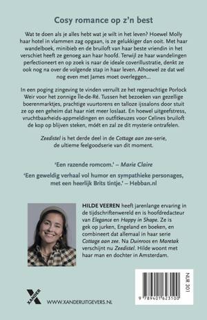 In Zeedistel, het derde deel in de Cottage aan zee-serie van Hilde Veeren, vraagt Molly zich af wat te doen in het leven als je eigenlijk alles hebt wat je wilt? Hoewel ze haar hotel in vlammen zag opgaan, is ze gelukkiger dan ooit. Met haar wandelboek, minibieb en de bruiloft van haar beste vriendin in het verschiet heeft ze genoeg aan haar hoofd. Terwijl ze haar wandelingen perfectioneert en op zoek is naar de ideale coverillustratie, denkt ze ook nog na over de volgende stap in haar leven. Alhoewel ze dat wel nog even met James moet overleggen...