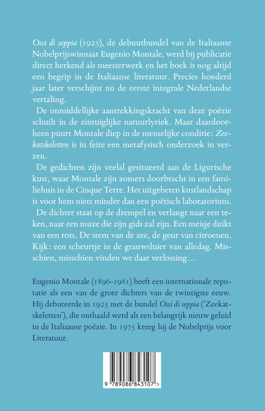 Ossi di seppia (1925), de debuutbundel van de Italiaanse Nobelprijswinnaar Eugenio Montale, werd bij publicatie direct herkend als meesterwerk en het boek is nog altijd een begrip in de Italiaanse literatuur. Precies honderd jaar later verschijnt nu de eerste integrale Nederlandse vertaling.