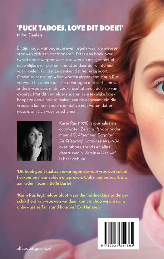 Karin Rus verweeft haar persoonlijke ervaringen met verhalen van andere vrouwen, onderzoeksresultaten en de visie van experts. Met dit verhelderende en aanstekelijke boek hoopt ze een einde te maken aan de eenzaamheid die vrouwen kunnen voelen, omdat ze niet weten dat er niets is om zich voor te schamen.