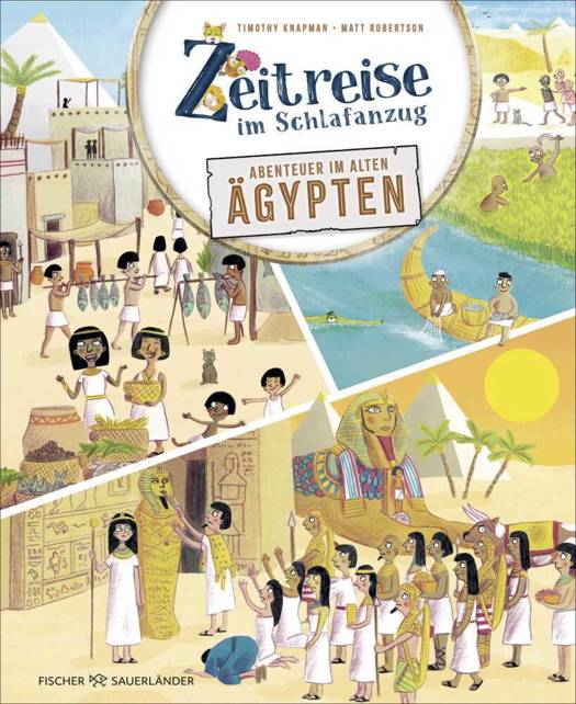Stell dir vor, du würdest einen Zeitreisetanz machen und auf einmal im Alten Ägypten landen. Wie komplett verrückt wäre das? Aber genauso geht es Jakob, Lula und der Katze Kralli in diesem Kindersachbuch für das Grundschulalter. Und so können sie mit ihren neuen altägyptischen Freunden erkunden, wie man damals wohnte (wohlhabende Leute in riesigen Häusern), was für Kleidung man trug (Perrücken und lange Gewänder), was es zum Essen gab (keine Pizza, dafür Bier für alle) und wie man tote Körper zu Mumien machte (gruselig!). Besonders angetan sind die Zeitreisenden aber von den prunkvollen Pyramiden und Tempeln. Am Ende der Nacht haben nicht nur sie, sondern auch die kleinen Leser in bunten und deteilreichen Bildern ein richtiges Abenteuer erlebt und dabei mit großem Spaß jede Menge über die alte Hochkultur gelernt.