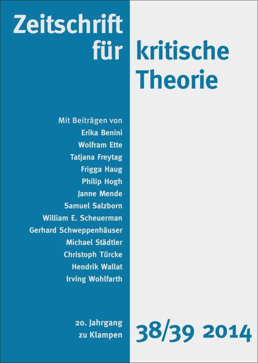 Zeitschrift für kritische Theorie ist ein Diskussionsforum für die materiale Anwendung kritischer Theorie auf aktuelle Gegenstände und bietet einen Rahmen für Gespräche zwischen den verschiedenen methodologischen Auffassungen heutiger Formen kritischer Theorie.Sie dient als Forum, das einzelne theoretische Anstrengungen thematisch zu bündeln und kontinuierlich zu präsentieren versucht.Mit Beiträgen von:Erika BeniniWolfram EtteTatjana FreytagFrigga HaugPhilip HoghJanne MendeSamuel SalzbornWilliam E. ScheuermanGerhard SchweppenhäuserMichael StädtlerChristoph TürckeHedrik WallatIrving Wohlfahrth